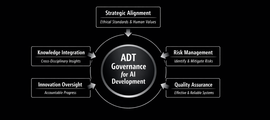 This approach transforms conventional AI governance from a largely reactive, tool-specific activity into a systemic, human-governed framework for responsible innovation. By embedding governance mechanisms within operational workflows, ADT bridges the divide between emerging technologies and societal needs, providing an environment in which decisions are auditable, accountable and aligned with genuine economic, societal and environmental benefit.